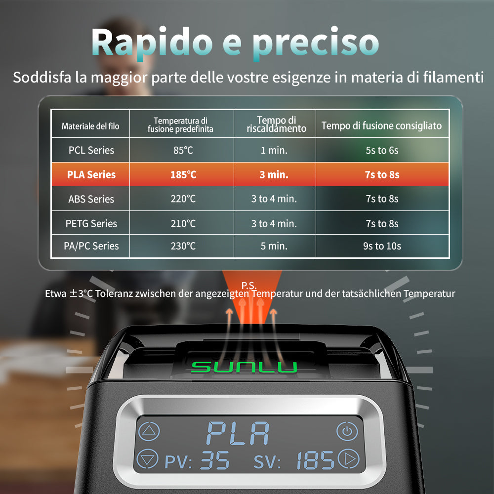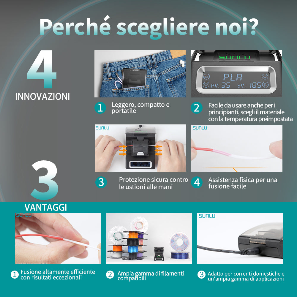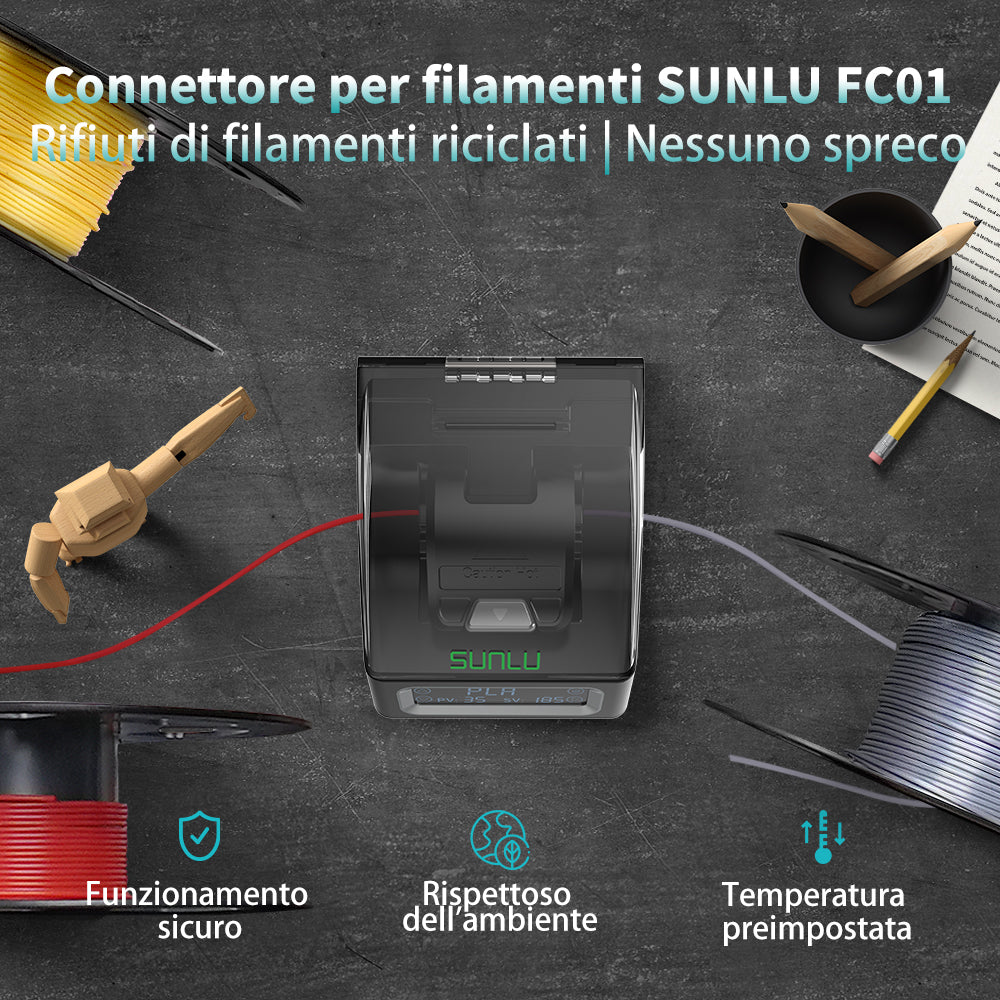 SUNLU Connettore per Filamento FC01, Saldatore a Fusione, Saldabile a Filamenti PLA, ABS, PETG, PCL, PA e PC da 1,75mm