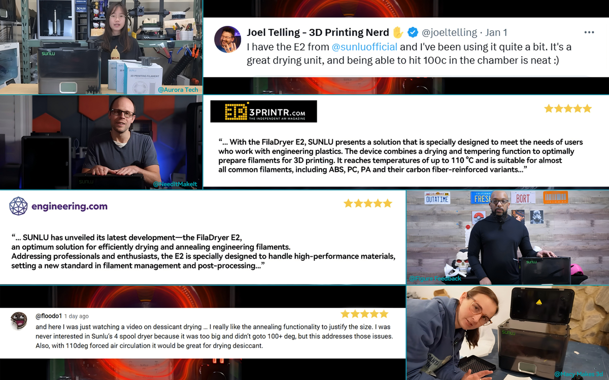 SUNLU FilaDryer E2, fino a 110℃, Asciugatura e ricottura Professionali, nato per i filamenti di stampa 3D tecnici