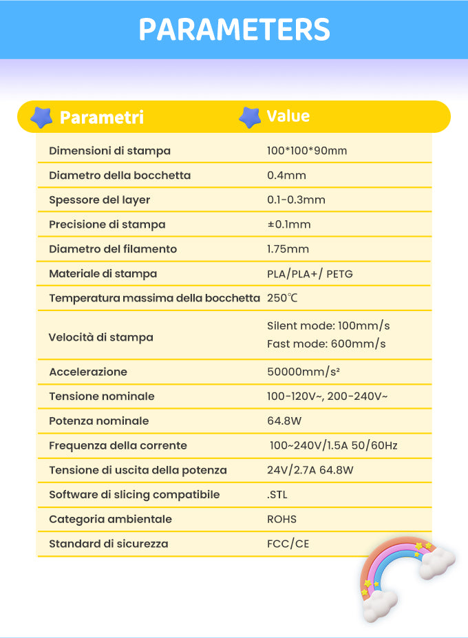 Materiali sicuri per i bambini: utilizza materiali PLA atossici ed ecologici che proteggono la salute dei bambini.