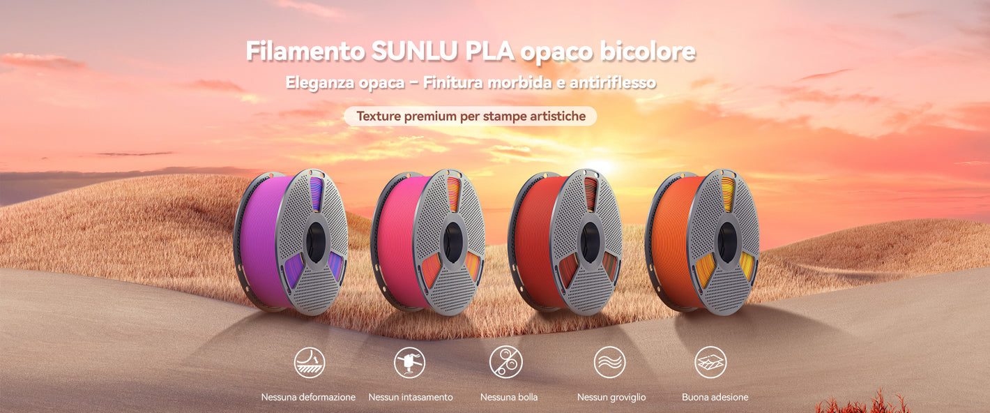 [MOQ: 3KG] SUNLU PLA Matte Dual-Color Filamento PLA opaco bicolore 1KG- Transizioni Bicolori Senza Soluzione di Continuità e Finitura Matte Morbida